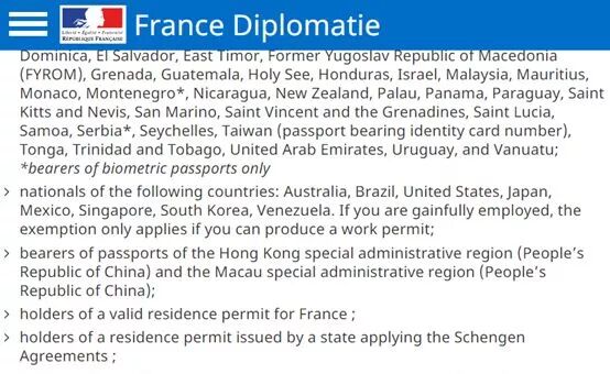 http://www.diplomatie.gouv.fr/en/coming-to-france/getting-a-visa/article/foreign-nationals-holding-ordinary-passports-exempt-from-visa-requirements